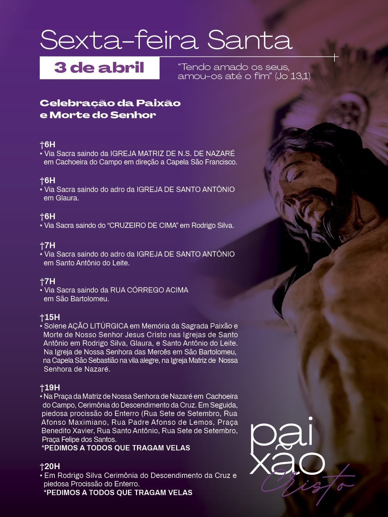 Cachoeira do Campo.: Paróquia de Nossa Senhora de Nazaré convida fiéis para as celebrações da Semana Santa 2026 em Cachoeira do Campo – MG